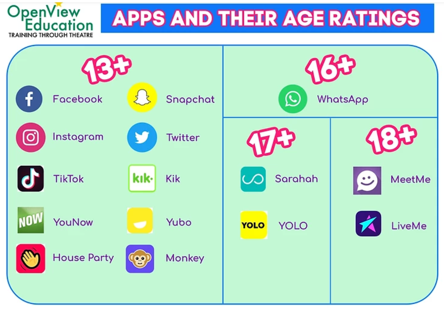 This is a useful visual reminder for parents of the age restrictions of some popular platforms to help you decide how appropriate they are for your child to access and what level of supervision needs to be in place. Age limits are there to protect children, please make sure you supervise very closely what your children are accessing.