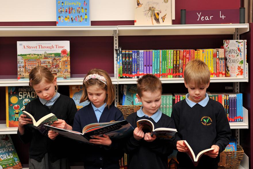 We are passionate readers because reading is at the heart of our curriculum, we are surrounded by high quality texts in our school library. Our library has been stocked with a range of 'New and Bold' and 'Old and Gold' texts. The 'New and Bold' selection includes the 50 recommended reads for each year group along with a range of diverse texts and authors. The 'Old and Gold' selection are from chosen British authors of classic books that teachers and pupils want to share in school. Each year group learns about an author from the 'Old and Gold' range and has the opportunity to share these books in school and at home.